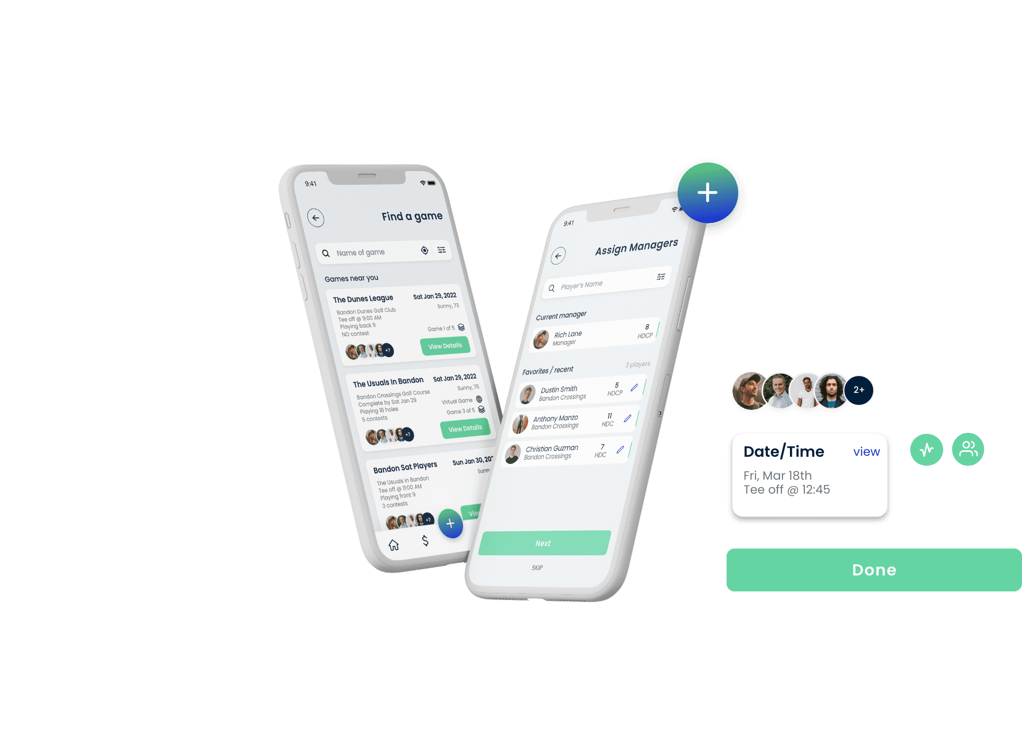 Most golf apps leaned heavily on tradition and conservative visuals. I intentionally chose a more modern direction. Mint green paired with deep navy created a fresh but credible palette. The logo symbolized a golf ball in motion, capturing momentum, progress, and the feeling of a great shot rather than static heritage.